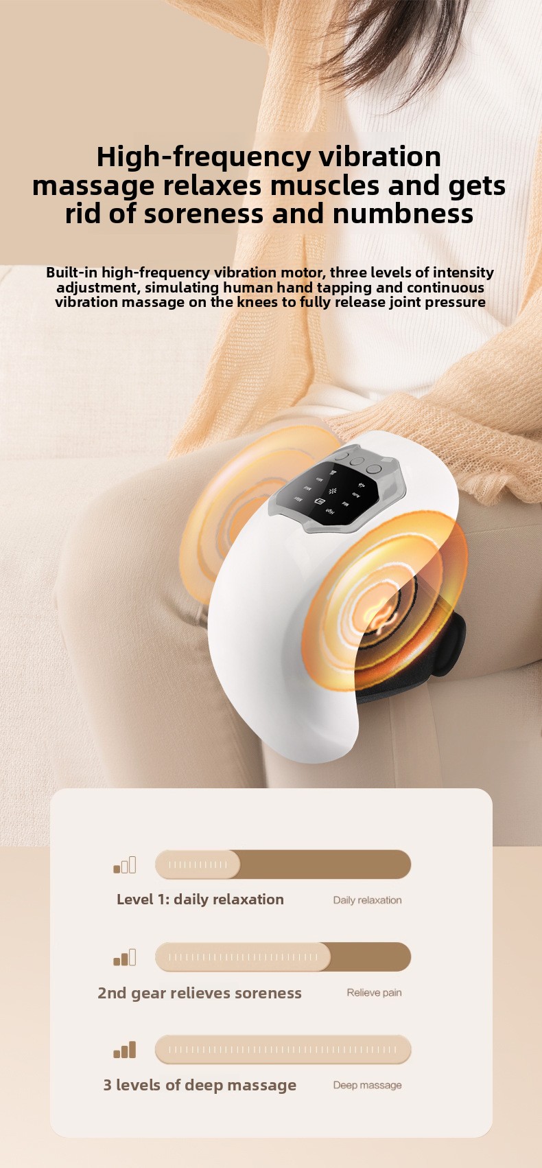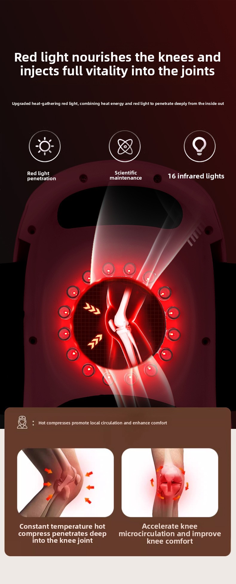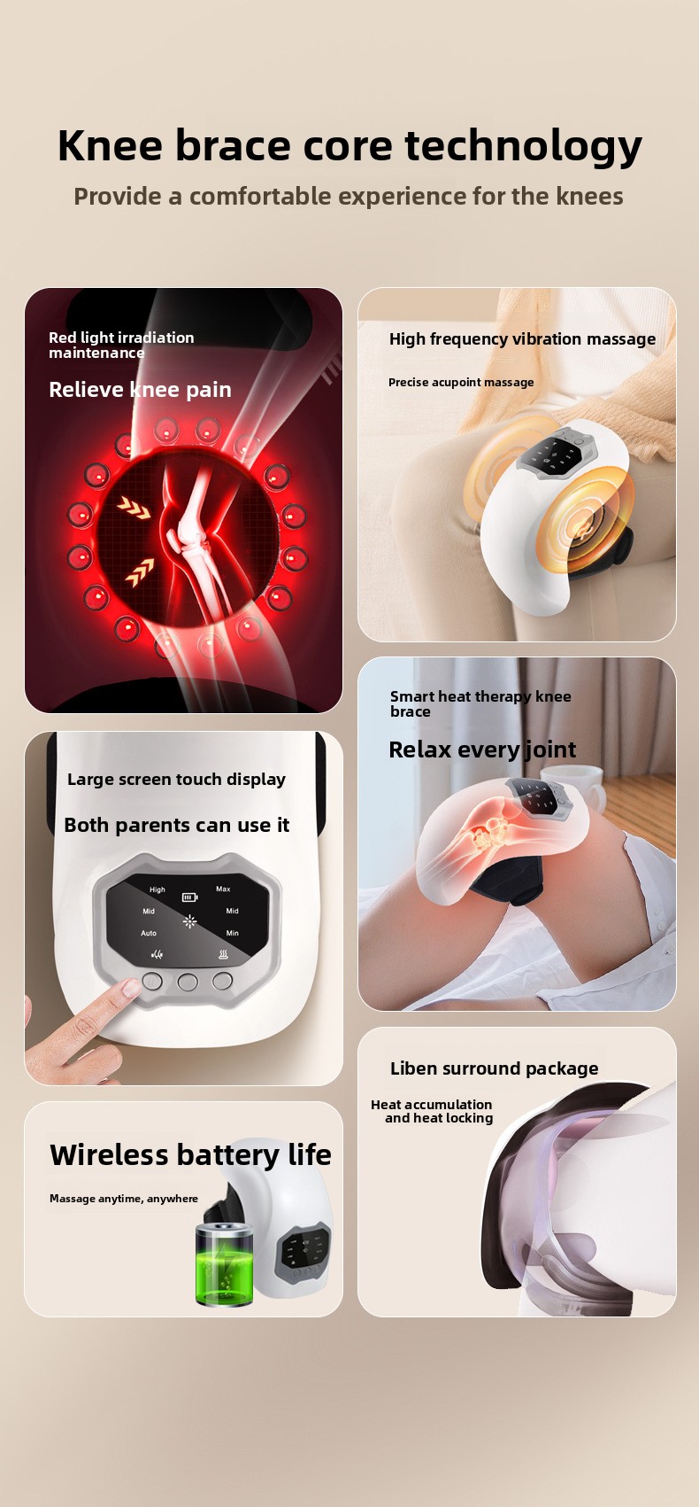 Heating Therapy: Provides soothing heat to alleviate knee discomfort and improve blood circulation